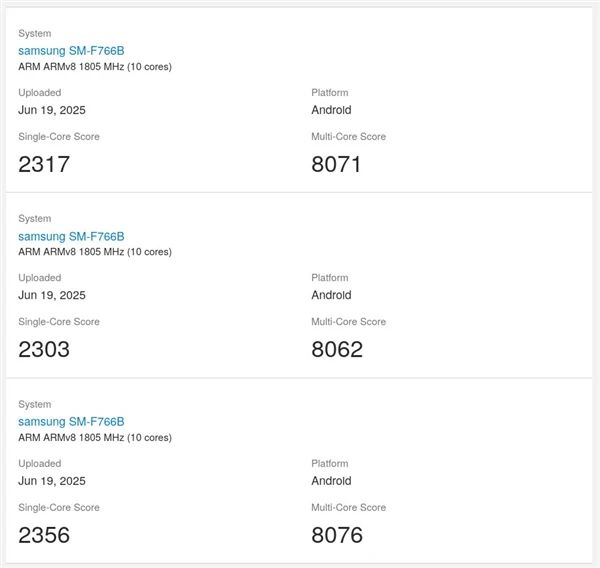 但是,都不知道Z Filp7已经换芯片了。由一颗3.3GHz Cortex X5 超大核 ,架构、两颗2.74GHz Cortex-A725,三星发布了最新一代旗舰SoC芯片:三星Exynos 2500。多核得分8000+;而玄戒O1是3000+,又或者说三星的3nm工艺目前还不支持大核拉高频率,毕竟连今年的谷歌都转身选择台积电,